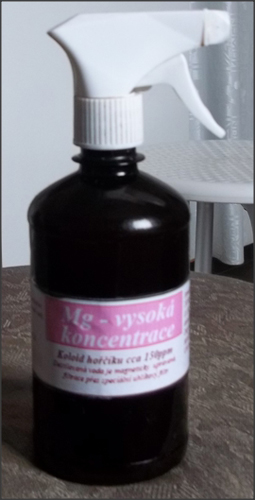 Na hořčíku jsou závislé úplně všechny systémy našeho těla. Koloidní hořčík je vyroben elektrolýzou, čistota kovu elektrod je 99,99 %. Do kvalitní destilované vody jsou za pomocí stejnosměrného proudu, uvolněny nanočástice hořčíku. Tyto částice jsou natolik malé, že na ně nepůsobí gravitační síla a v roztoku se volně pohybují a při dodržení proudového limitu projdou i do buněk. Množství nano částic v roztoku v našem případě je 150 ppm, což je vysoká koncentrace a proto je důležité dodržovat užívané množství což je 5 - 20 ml denně, zapít sklenicí vody. Pokud použijeme koloidní hořčík k prevenci stačí 20 ml 1x týdně. Je stanoveno, že hořčík v podobě nano částic vydrží v krvi 9 dní. Roztok s nano částicemi hořčíku je bez typické hořké chuti s vysokou vstřebatelností cca 95 %. Eiminuje vyčerpání, ulevte od únavy svalů, pečuje o kosti a zuby, podporuje nervovou i svalovou soustavu, navozuje relaxaci a lepší spánek, podporuje kognitivní schopnosti, dodává energii a snižuje množství tělesného tuku, podílí se na procesu dělení buněk.